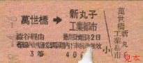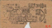 休止数日前、汽車区間用のB型一般式券。昭和17年頃から用紙節約のために使用されていた。