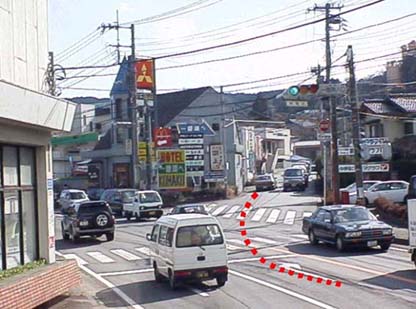 ここで右折