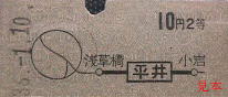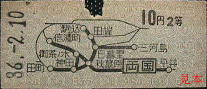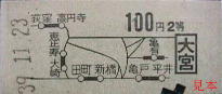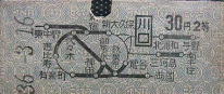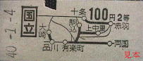 この時期の地図式券は基本的に10〜50円(50円券は一部のみ)区間で発売されていたが、電環外の駅から電環内向けを条件に一部の駅で100円券が発売されている。