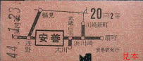 昭和42年4月1日から印刷券売機(スミインク式)でも地図式乗車券が発売されるようになった。