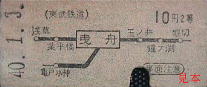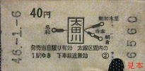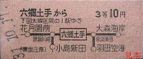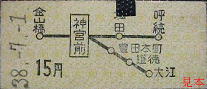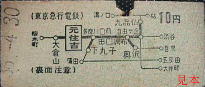 さらに多摩川園前の券では社名が最上段に移動し「3等」の表記も消えてしまう。(「自」の表示は自動券売機で発行されたことを示している)