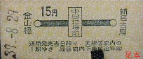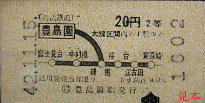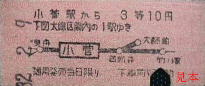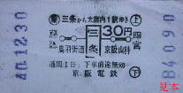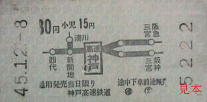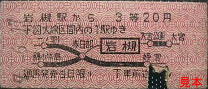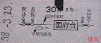 三等級制時代後期の券、自社緑地紋で上段の発駅表示はなくなった。