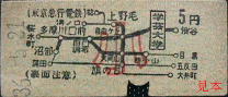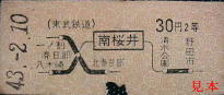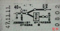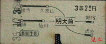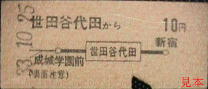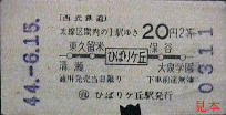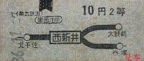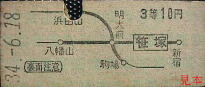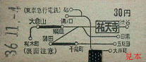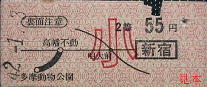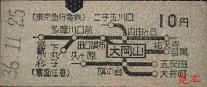 券売機券でも地図式乗車券が発売されていた。代々木八幡の券は昭和45年発行だが、「2等」の表記が消されないまま使用されている。