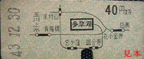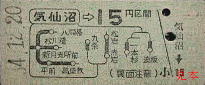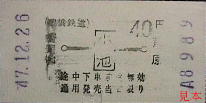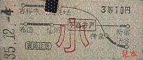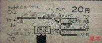 同時期に発売された軟券地図式乗車券。表面に「No.」表示があるだけで硬券と同一の様式になっている。