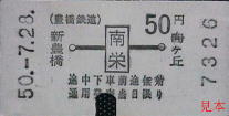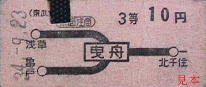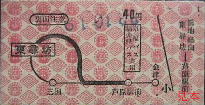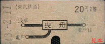 曳舟の券は3等級制中期の券で、様式が大幅に変わり太線が異様に太くなった。社名表記が表面に入った代わりに注意書きが裏面になったため、「裏面注意」の表示が入っている。