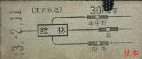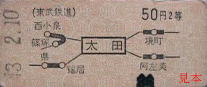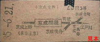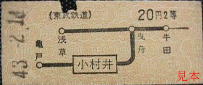 二等級制時代の券。上段は初期の券で、等級表示が無くなった以外に変化はない。