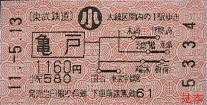 現行券は券売機によって多少フォント(「小」表示、料金、社名など)が異なっており、また小村井の券には「入鋏省略」表示が印刷されている。