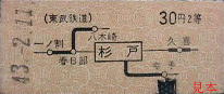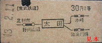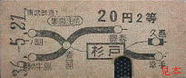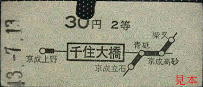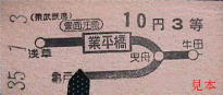 業平橋の券は3等級制後期の券で、「○円3等」表記に変わった以外に変化はない。西新井、杉戸の券は2等級制初期券で青地紋に「○円2等」と変わった。
