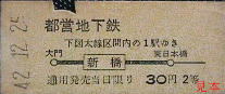 昭和36年11月1日に均一料金制が廃止され、一般的な様式となった。上から銀座線、丸ノ内線、荻窪線、日比谷線(当時は北千住〜東銀座間)で発売されていた。