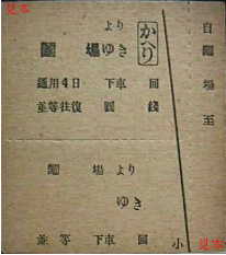 左は昭和初期頃のC型補充往復乗車券で地模様は無い。右は戦後のB型補充往復乗車券だが、B型の往復券で右端に小児片があるのは珍しい。