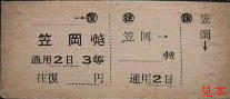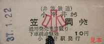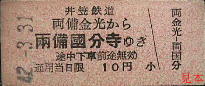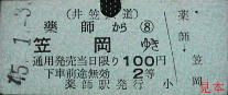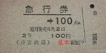 井笠鉄道発行の国鉄線急行券。乗り入れ急行の存在しない私鉄発行の急行券は稀少である。