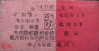 本線の乗車券。左は二等級制時代初期の小児券。中央・右は二等級制時代後期の券で、モノクラス制時代になっても残券が使用されている。