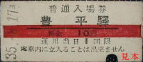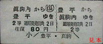 豊平発行の往復乗車券。駅名の一部に旧字体が使用されている