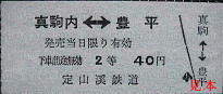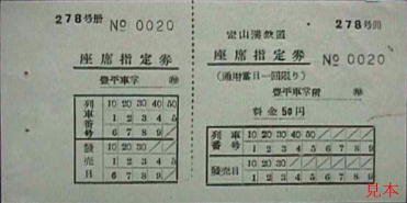 車内発行用座席指定券。定山渓鉄道には座席指定車が存在し、優等列車に連結されていた。