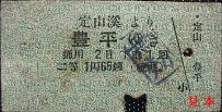 国鉄連絡乗車券。自社線内用と同一様式で国鉄連絡の注記は一切無い。
