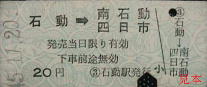 モノクラス後の乗車券。左の「四日市」は「四日町」のミスであろう。