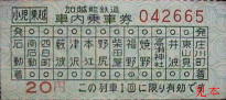 車内乗車券。区間は入鋏式だが、金額は固定である。