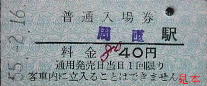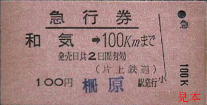柵原発行の国鉄線急行券。国鉄線からの乗り入れ急行・特急のない私鉄で発行された国鉄線の料金券は貴重である。