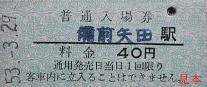 B型一般式乗車券。昭和40年代くらいまで広く使用されていた様である。