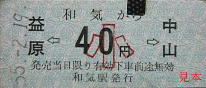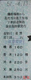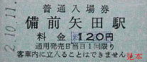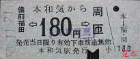 準常備乗車券。本和気の券は着駅名が一文字に省略された珍しい様式である。