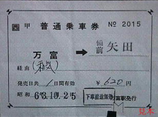 特に吉ヶ原の券は一駅着になっており、両矢印式券としては稀少である。