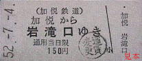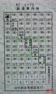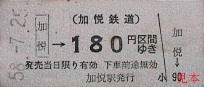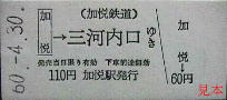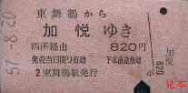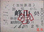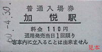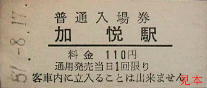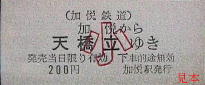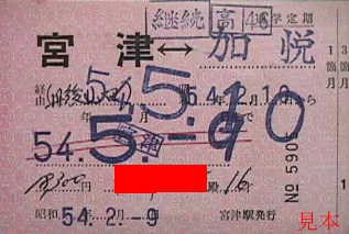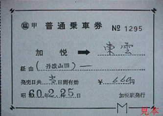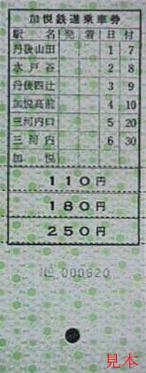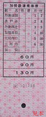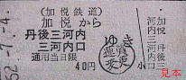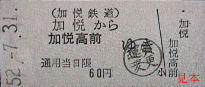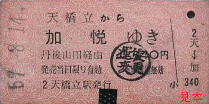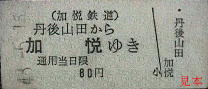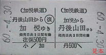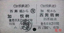 一般式乗車券。右の券は「加悦谷高校前」が「加悦高前」に省略されている。