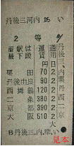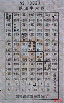 その後、金額式乗車券に変わった(左・中央)。右は最晩年の乗車券は矢印式となり、券紙も無地のボール紙が使用されている。