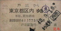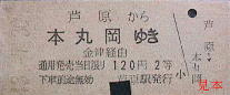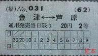 区間常備の車内乗車券。A型券より一回り小さい軟券となっている。