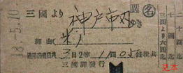 三国線休止前のA型乗車券。上段左の券は昭和7年8月〜12年6月の間に発行されたキロ程入りの券。