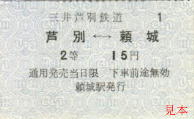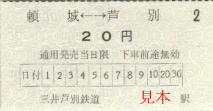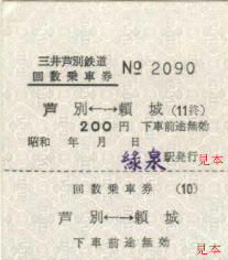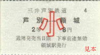 連絡用の券は、発駅が連絡運輸出来る頼城・緑泉・三井芦別と乗越用に芦別の欄がある。