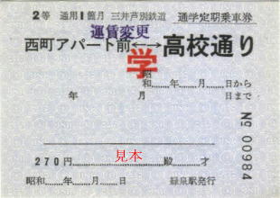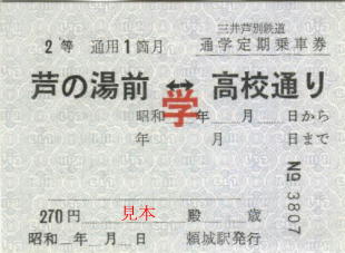 常備通学定期券。共に2等級制時代の券だが、若干様式が異なる。