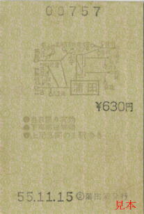 昭和51年11月6日の規則改正で50q以下が金額式に改められ、さらに55年4月の規則改正で近郊区間外の駅でも発売されるようになった。