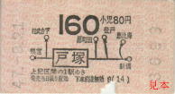 最下段は熱転写印字で、ドット描画の関係上、着駅表示が四角枠になっているが、藤沢の券は昭和55年6月に登場した量産型定乗印発機で発行された券で、着駅表示や山手線の表示が後年の券と一線を画している。