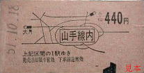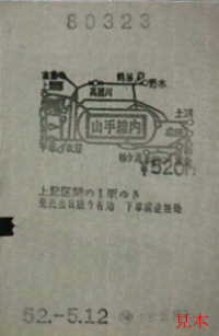 山手線内発の地図式券は、発駅枠の太さが細い券と太い券と、山手線表示が無い券がある。