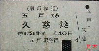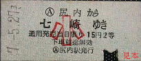尻内発行の大小併用乗車券(左)と小児専用乗車券(右)。