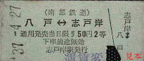 国鉄連絡乗車券。左は「当日限り」のB型券(当時の八戸は現在の本八戸)、右は「2日間有効」のA型券。