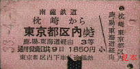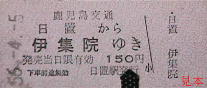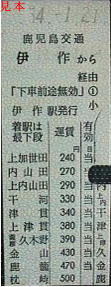下段の券は、当時まだ指宿枕崎線が全通していなかったので、伊集院経由である。