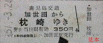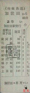 加世田の券は隣の上加世田ゆきなので、「下車前途無効」の表示がない。