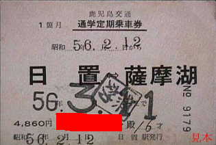 鹿児島交通となってからの国鉄連絡乗車券。当時は伊集院から国鉄に直通する列車もあった。