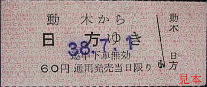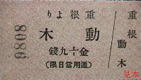 動木駅発行の硬券往復乗車券。
