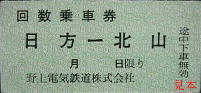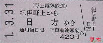 下段は日方駅に設置されていた自動券売機券で平成4年のもの、地紋は南海電鉄になっておりしかも、自動改札もないのに磁気券である。