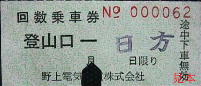 回数券片のうちの1枚。左は駅名常備式のもの、右は駅名補充式で券番が表にある。