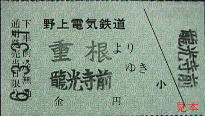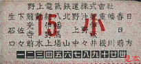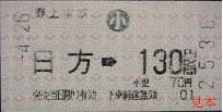 車内乗車券。左の物は生石口が昭和33年に改称される以前のもの。