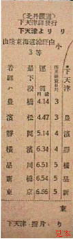下天津からの省線連絡準常備乗車券。この画像では解りにくいが、D型券より若干縦長のサイズである。