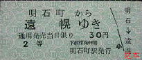 一時期使用された地図式乗車券。明石町の券は国鉄北海道総局や美唄鉄道の券に酷似しているが、シューパロ湖の券は活字で組まれたような粗末な地図となっている。