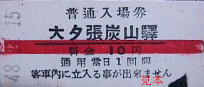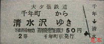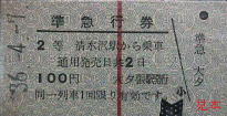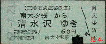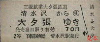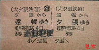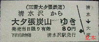 大夕張発行の国鉄準急行券。乗車駅が清水沢常備となっているため、夕張線を走った数少ない優等列車、準急「夕張」の為の券である。