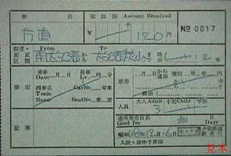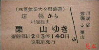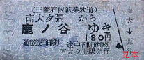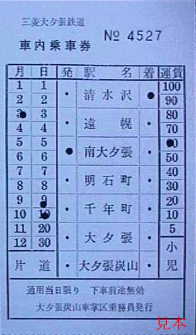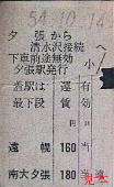 車内乗車券。部分廃止後の券は駅数が少ないため、間延びした様式になっている。