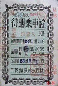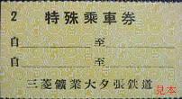 待遇乗車證と特殊乗車券。何れも三菱や鉱山関係者用の乗車券(乗車証)であろう。