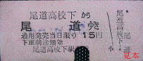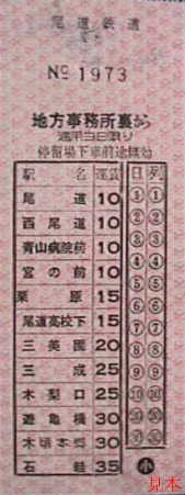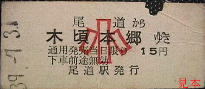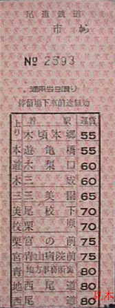 地方事務所裏乗車の軟券乗車券。車内片道乗車券であろう。