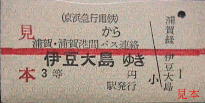 京浜急行電鉄バス・航路連絡乗車券。京浜急行には航路連絡券が各種有るが、この券は線内各駅〜浦賀〜浦賀港〜伊豆大島の券で、赤線横一条が入っている。